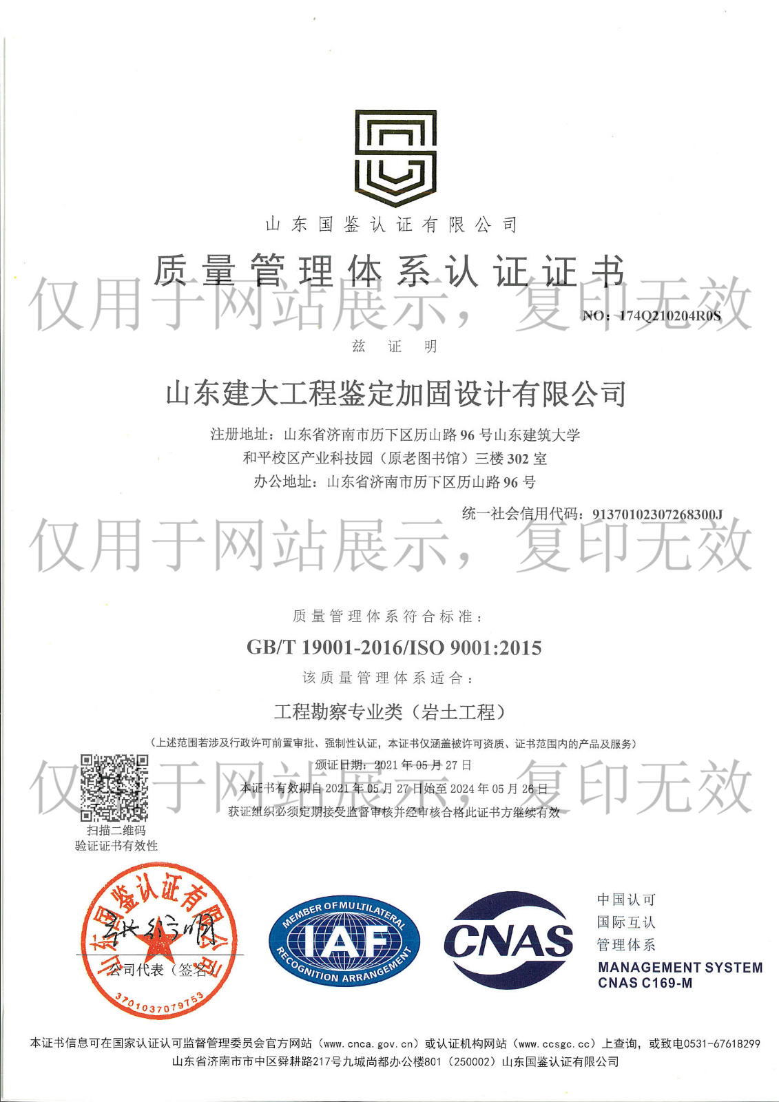 質(zhì)量管理體系認(rèn)證證書