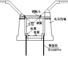 在地下通廊結(jié)構(gòu)中,鋼漏斗內(nèi)鐵礦原料通過鋼梁對毛石擋墻施加豎向力。由于鋼漏斗內(nèi)原料高度經(jīng)常大于設(shè)計高度,使得毛石墻受到來自鋼漏斗較大的恕向壓力,造成毛石墻的基礎(chǔ)下沉,為了避免毛石墻基礎(chǔ)進一步下沉,需要對其進行加固處理。地下通廊皮帶槽與毛石墻體之間的最大距離約1.5m,最小距離0.5m,機械設(shè)備無法進行施工,同時整個加固施工期間不能影響生產(chǎn)的正常運行,經(jīng)過多方論證,決定采用人工成孔的微型樁(樹根樁)對毛石擋墻基礎(chǔ)進行托換處理。通過增加的鋼筋混凝土立柱、地梁和微型樁組成的豎向受力體系分擔(dān)來自鋼梁的壓力(圖7),減小毛石擋墻所受的豎向力,從而減小其沉降。