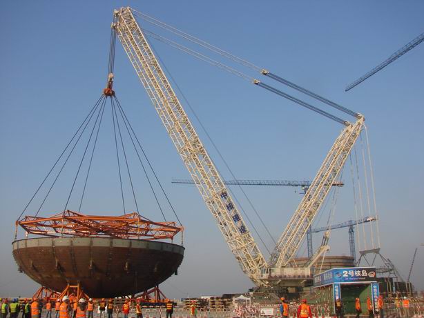 CVBH直徑39.624米(內(nèi)徑),高11.5米,是海陽(yáng)2號(hào)核島鋼制安全殼(CV)的第一個(gè)運(yùn)輸?shù)跹b組件,運(yùn)輸總重量741.23噸,吊裝總重量862.42噸。