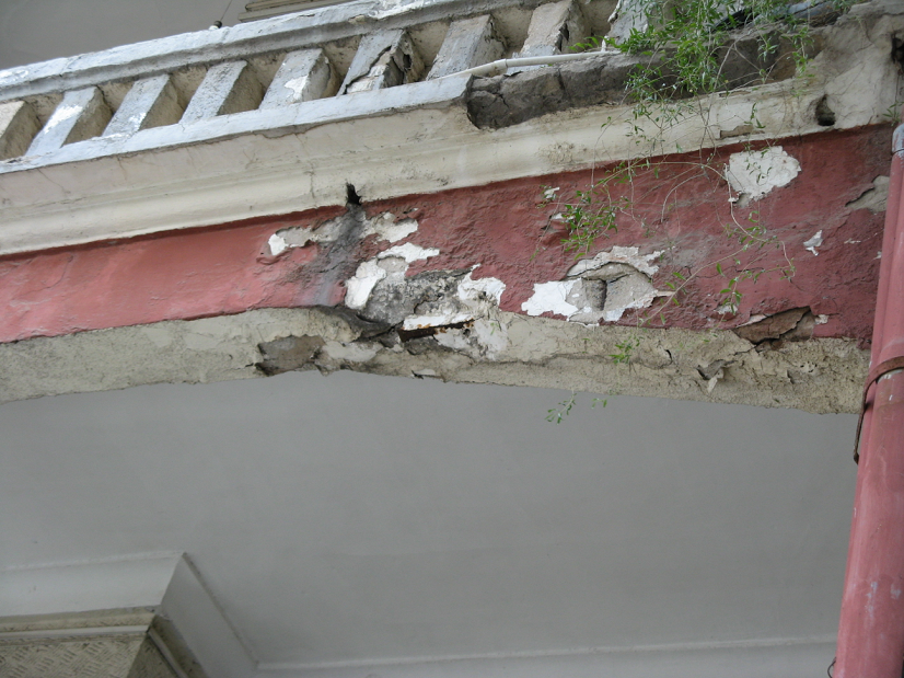 濟(jì)南市郵政局北二樓,建于1919年,兩層磚混結(jié)構(gòu),由于該建筑物使用年限接近100年,結(jié)構(gòu)構(gòu)件和非結(jié)構(gòu)構(gòu)件均有不同程度的損壞。按甲方要求,僅對結(jié)構(gòu)的安全性及抗震性能進(jìn)行復(fù)核,并對相關(guān)構(gòu)件進(jìn)行承載力復(fù)核和加固設(shè)計,屬保護(hù)性修繕設(shè)計范圍。