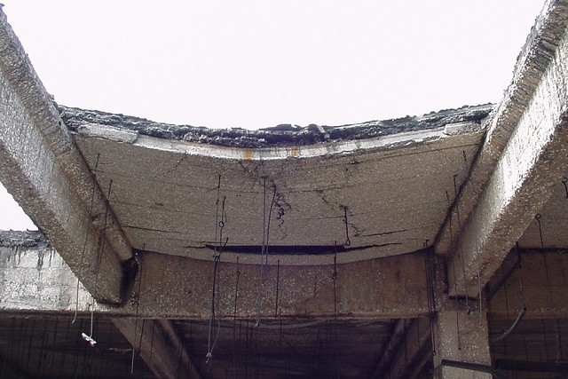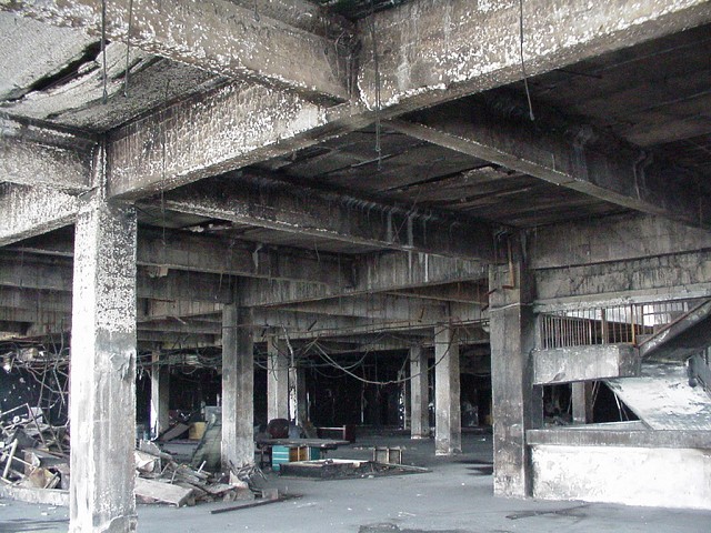 山東電子大廈為5層框架結構建筑物,于2000年發(fā)生火災,建筑物損毀嚴重,我所通過對其鑒定及加固設計,為消防部門分析失火原因、判定災后損失提供依據。