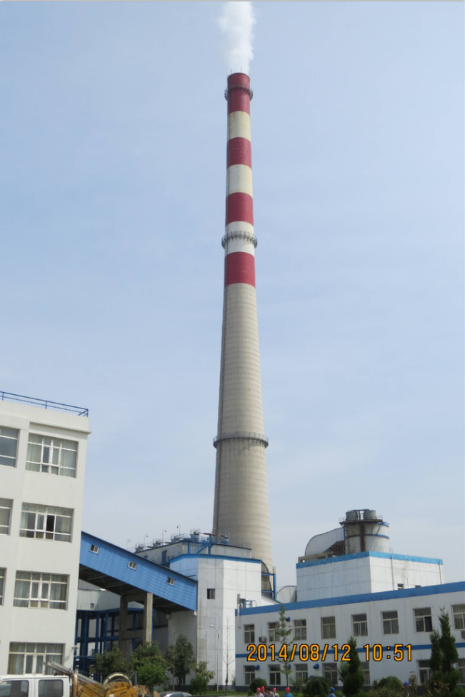 忻州市某煤電有限公司位于山西省忻州市忻府區(qū)。其廠區(qū)內(nèi)180m煙囪為2×135MW機(jī)組所共用。